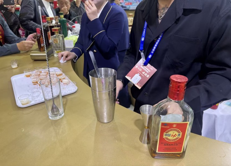 今年成都春糖,劲酒展位上设置了调酒区。时代周报记者摄