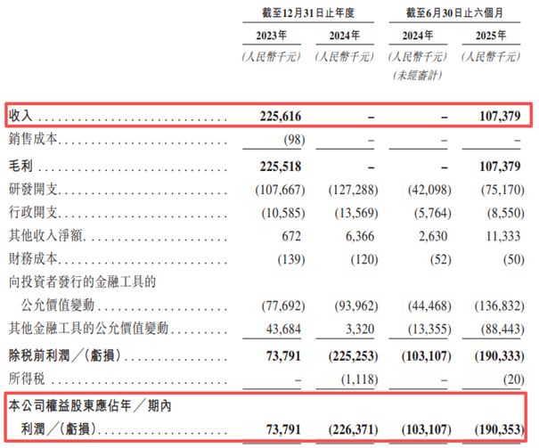对于2025年上半年的收入同比从0增至1.07亿元,公司称,主要由于其确认了与Biohaven的对外许可及合作协议项下的开发里程碑收入。就2024年及今年上半年的净亏损,高光制药将其归咎于营运开支以及向投资者发行的金融工具和其他金融工具的公允价值变动。