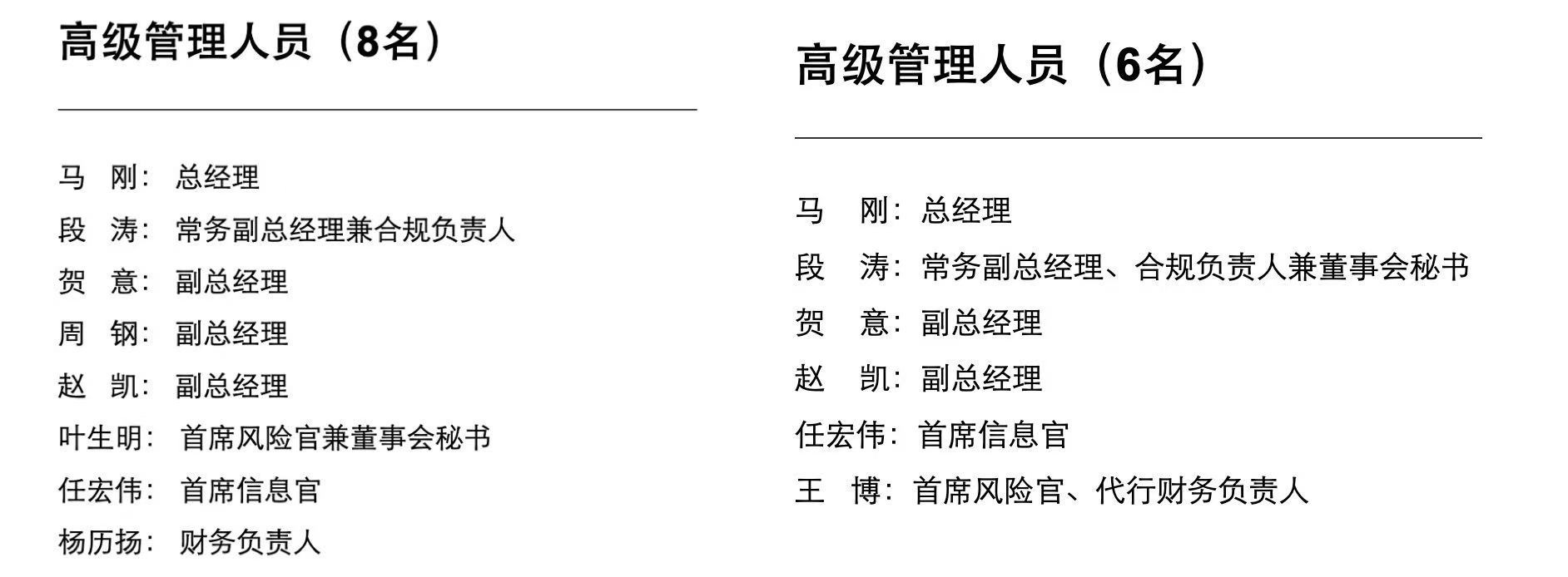 今年2月,华兴证券曾经历了一次备受瞩目的高层换届。彼时,作为公司成立牵头人的项威卸任,王力行接棒出任董事长,马刚出任总经理,公司搭建起“1名董事长+8名高级管理人员”的管理架构。这8名高级管理人员分别是总经理马刚、常务副总经理兼合规负责人段涛、副总经理贺意、副总经理周钢、副总经理赵凯、首席风险官兼董事会秘书叶生明、首席信息官任宏伟和财务负责人杨历扬。