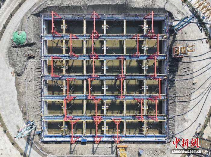 沉井下沉到位俯拍图。(无人机照片)黄珊摄