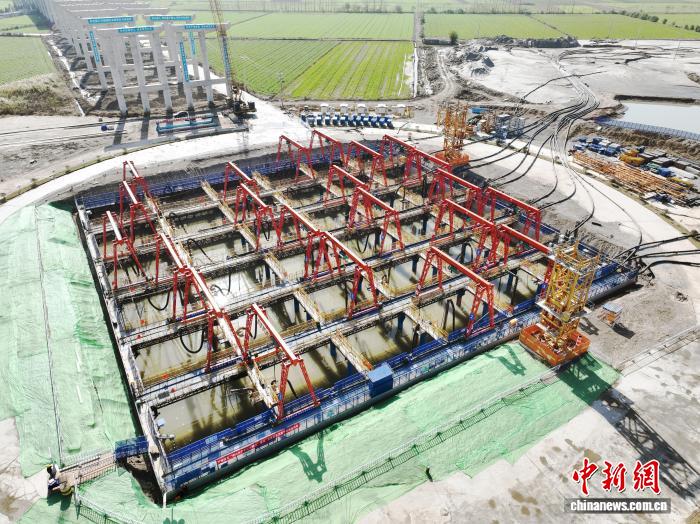 沉井下沉到位。(无人机照片)黄珊摄