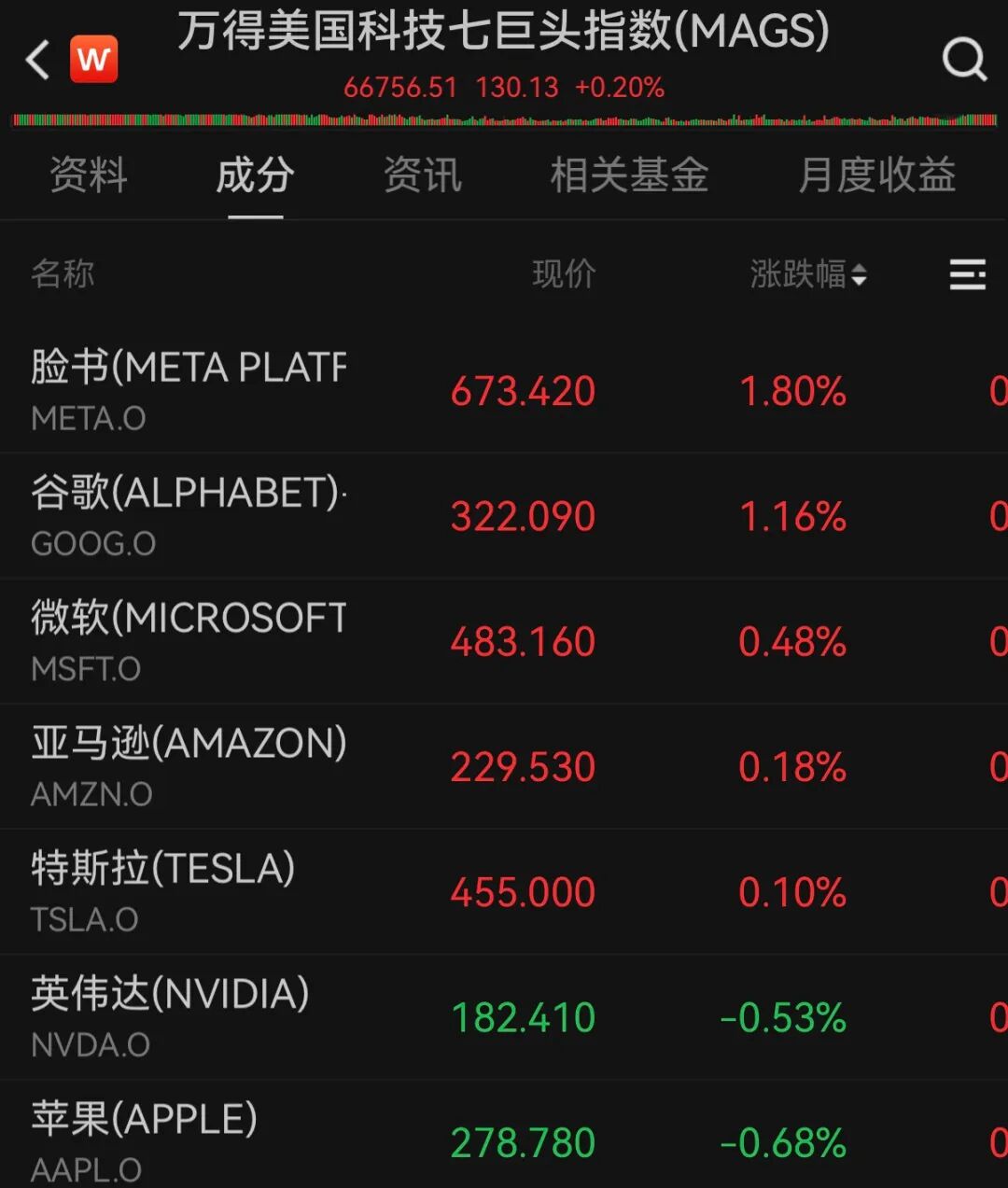 美国大型科技股多数上涨,万得美国科技七巨头指数涨0.20%。个股方面,META涨1.8%,谷歌涨超1%,微软涨0.48%,亚马逊涨0.18%,特斯拉涨0.1%;苹果跌0.68%,英伟达跌0.53%。