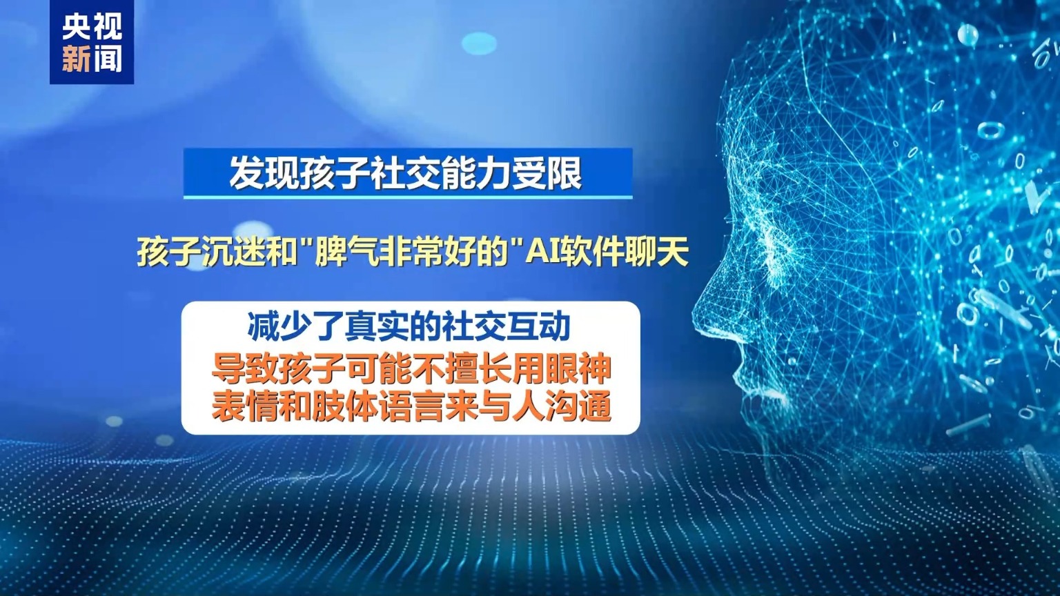 同时,她发现孩子社交能力受限,孩子沉迷和“脾气非常好的”AI软件聊天,减少了真实的社交互动,导致孩子可能不擅长用眼神、表情和肢体语言来与人沟通。