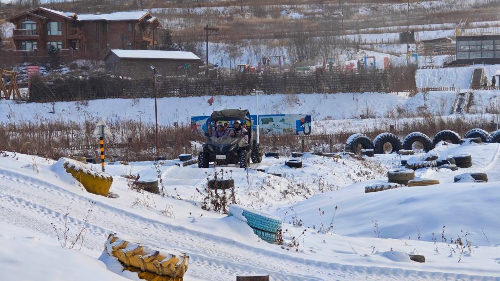 12月4日,在吉林省的长白山华美胜地度假区,游客在体验雪上机车。新华社记者唐铭泽摄