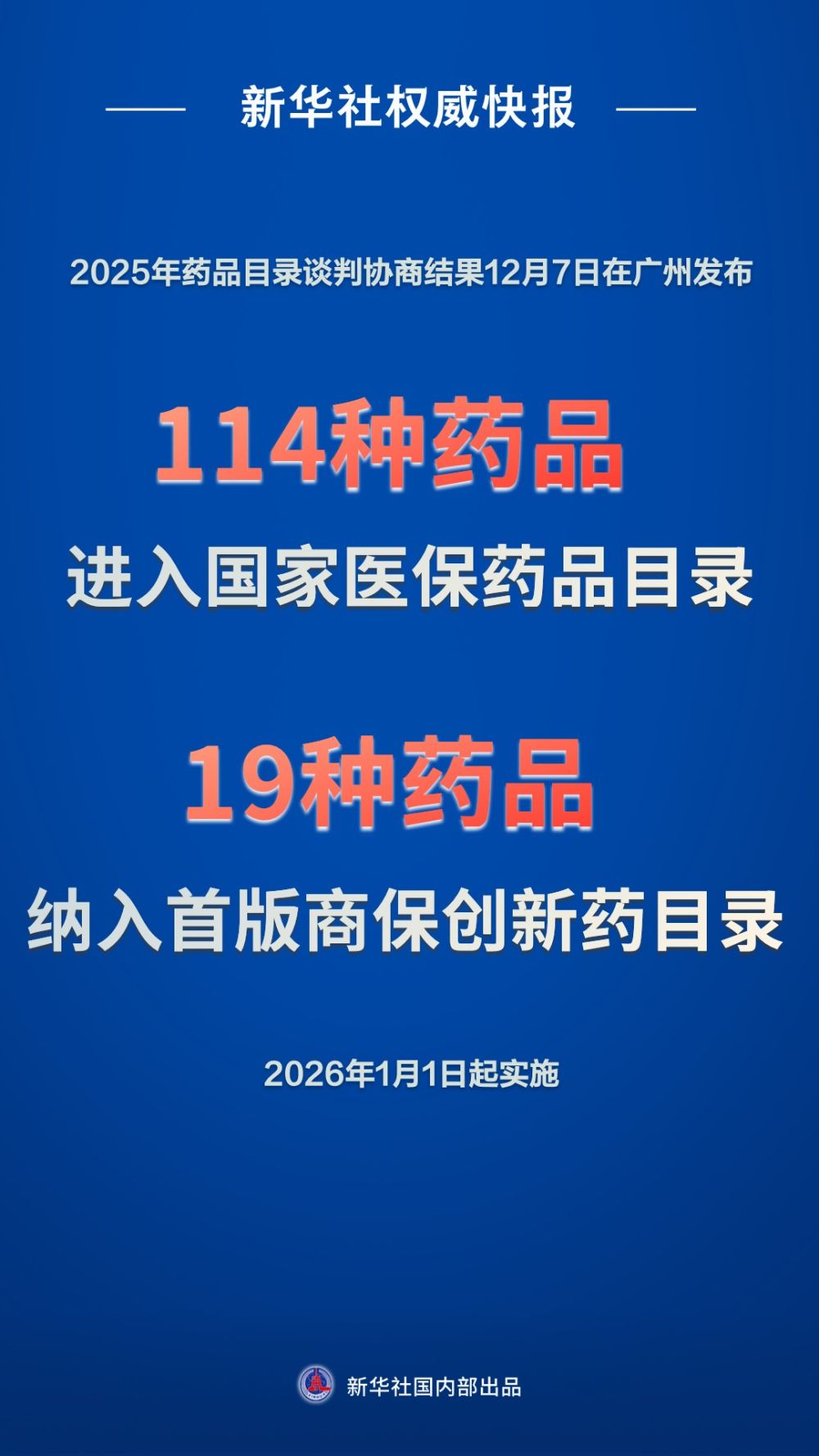 新华社权威快报 | 114种新药进入2025年国家医保药品目录