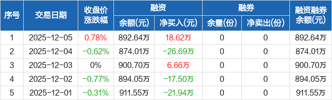 畜牧ETF:融资净买入18.62万元,融资余额892.64万元(12-05)