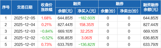 成长ETF:融资净偿还182.6万元,融资余额644.85万元(12-05)
