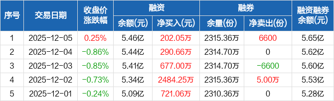 消费ETF:连续5日融资净买入累计4375.03万元(12-05)
