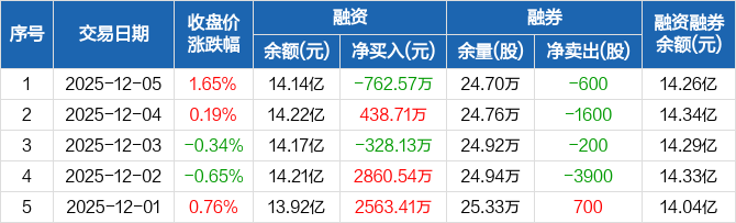 振华科技:融资净偿还762.57万元,融资余额14.14亿元(12-05)