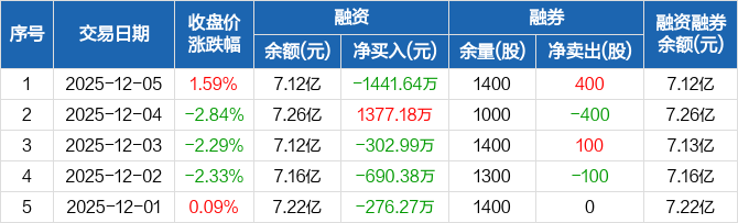 酒鬼酒:融资净偿还1441.64万元,融资余额7.12亿元(12-05)
