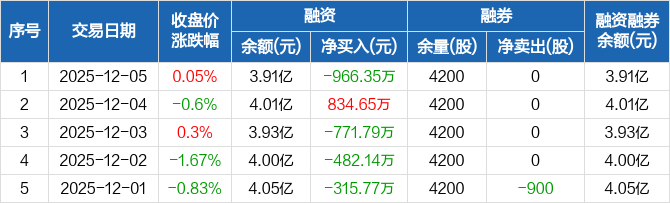 水羊股份:融资净偿还966.35万元,融资余额3.91亿元(12-05)