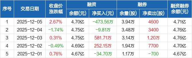 百洋医药:融资净偿还473.56万元,融资余额4.7亿元(12-05)