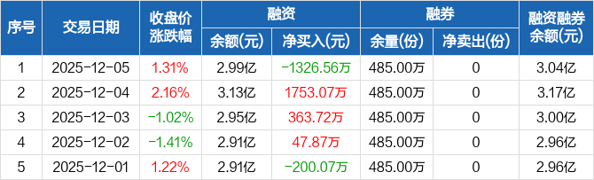 机器人ETF:融资净偿还1326.56万元,融资余额2.99亿元(12-05)