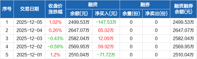 A500ETF易方达:融资净偿还147.53万元,融资余额2499.53万元(12-05)