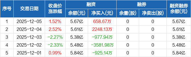 中大力德:融资净买入658.67万元,融资余额5.67亿元(12-05)