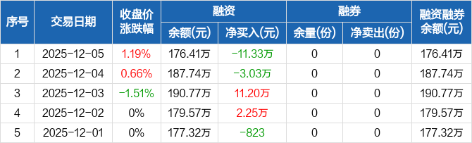 恒生中国企业ETF:融资净偿还11.33万元,融资余额176.41万元(12-05)