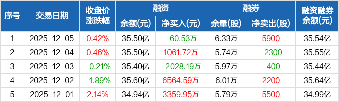 紫光国微:融资净偿还60.53万元,融资余额35.5亿元(12-05)