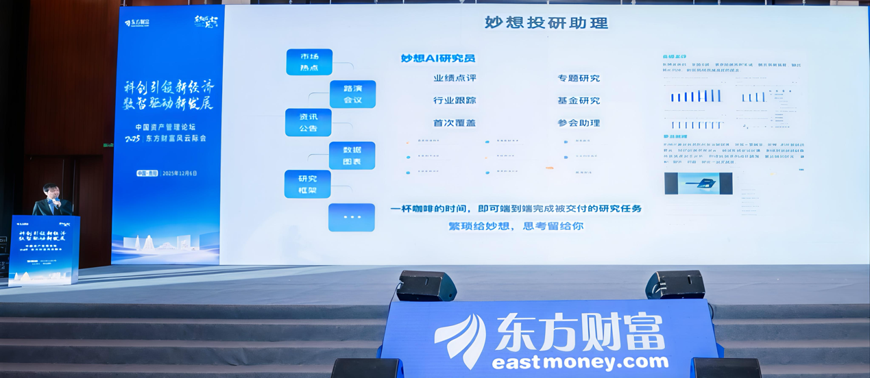 12月6日,“科创引领新经济数智驱动新发展——中国资产管理论坛暨2025东方财富风云际会”在贵阳隆重举行。东方财富首席科学家、AI总监曹巍以《妙想未来:AI推理驱动金融服务新范式》为题发表演讲,重磅展示新一代具备自主推理能力的妙想金融大模型,并指出:在特定投研场景下,未来AI将逐步逼近甚至超越人类分析师的专业深度与覆盖广度,其在金融领域的爆发式潜力,将推动金融研究、投顾服务与财富管理进入全面智能化新阶段。
