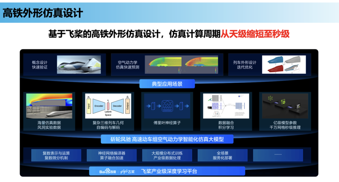 在应用方面,王海峰展示了深度学习在工业制造、生物医药和材料科学等领域的巨大潜力。例如,在高铁空气动力学设计中,基于飞桨的高铁外形仿真设计,仿真计算周期从天级缩短至秒级;在生物计算领域,HelixFold系列模型在蛋白质结构预测、生物分子相互作用建模等任务上持续取得突破,业界首个生物分子结构推理大模型HelixFold-S1基于引导规划的采样策略,实现了“先接触预测、后引导采样”的推理过程,突破了复杂结构预测的性能瓶颈。