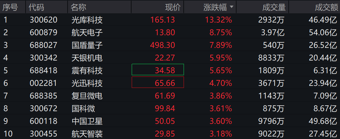 截至2025年12月8日 13:50,卫星ETF(159206)上涨1.62%, 冲击3连涨。成分股光库科技(300620)上涨13.32%,航天电子(600879)上涨13.80%,国盾量子(688027)上涨7.89%,天银机电(300342),震有科技(688418)等个股跟涨。
