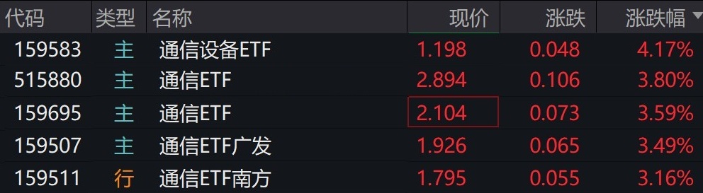 通信概念股走强,天孚通信涨超13%,航天电子涨超7%,中际旭创、剑桥科技涨超5%。