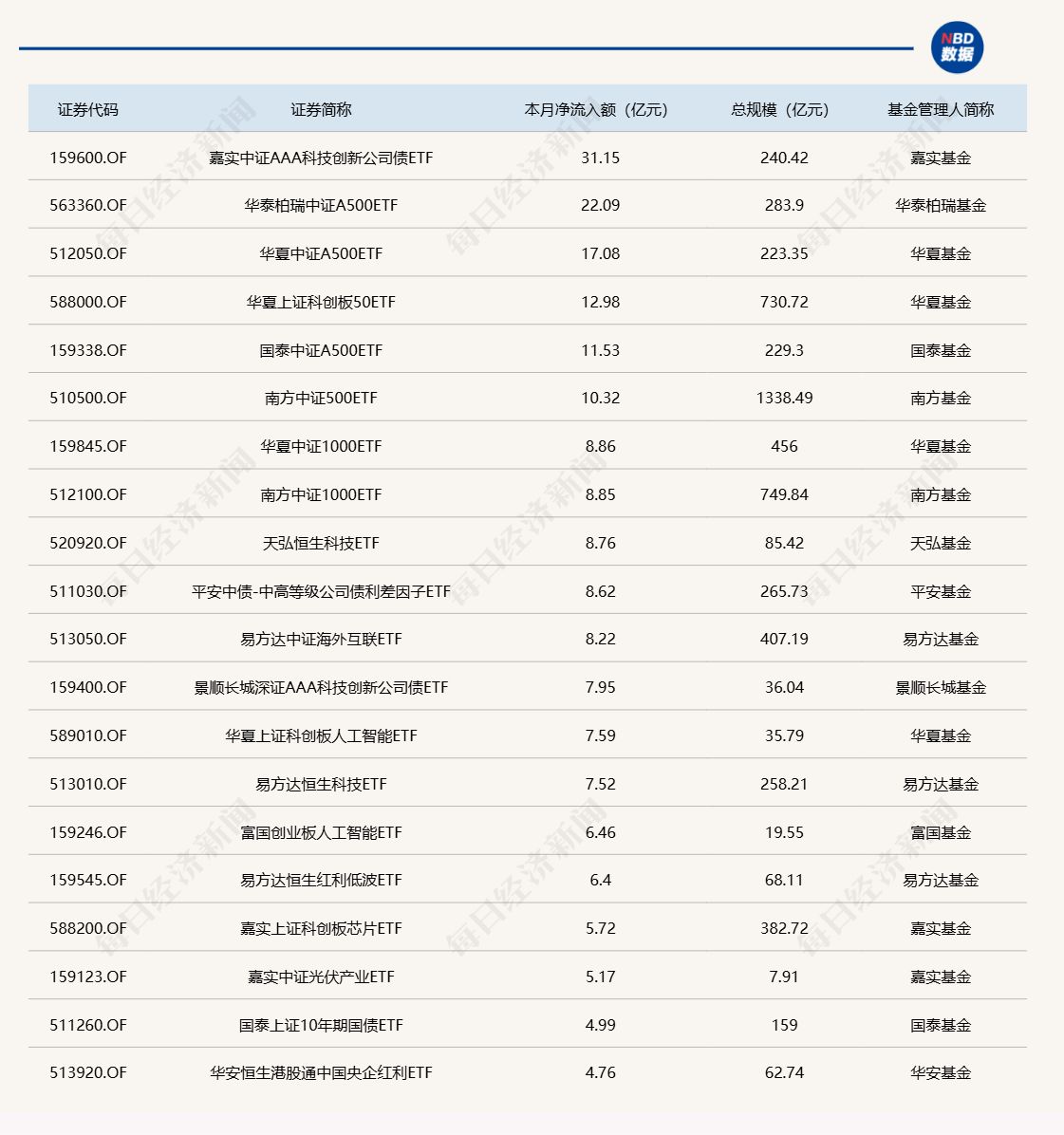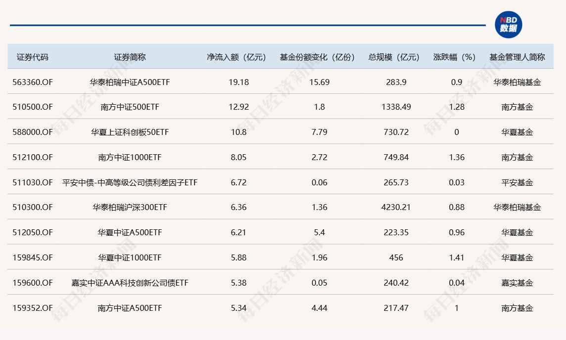 ETF规模速报 | A500ETF华泰柏瑞上周五净流入额超19亿元