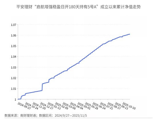作为固收增强的代表产品——平安理财“启航增强稳盈”系列今年的业绩表现也可圈可点。同样定位于R2中低风险,“启航增强稳盈”系列的投资策略则更加多元化,在存款、债券等稳健资产的基础上,该系列会通过品种增厚、票息增厚等方式丰富收益来源,同时叠加一定比例的市值资产及无多头含权属性资产增加投资组合收益弹性,适合追求固收理财的收益进阶且不想承担较大波动风险的投资者。