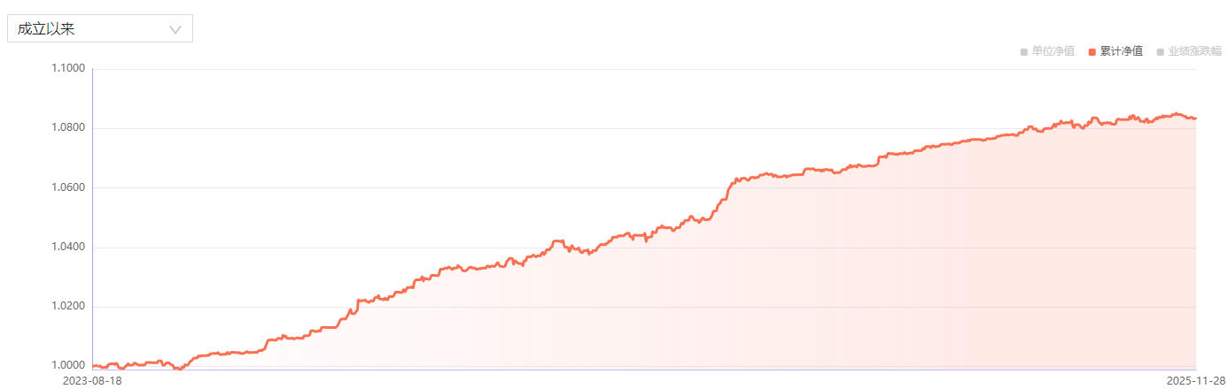定位于R2中低风险的“启元系列”是固收系列的核心代表。截至11月20日,启元系列产品业绩表现稳健,已兑付198期且业绩达标率100%,平均年化收益率为3.98%。以“启元策略一年定开5号A”产品为例,2024年年化收益5.39%,波动率1.07%,最大回撤仅-0.42%。