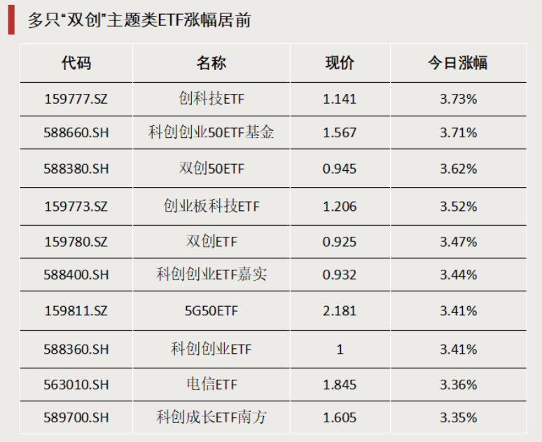 多只“双创”主题类ETF涨幅居前