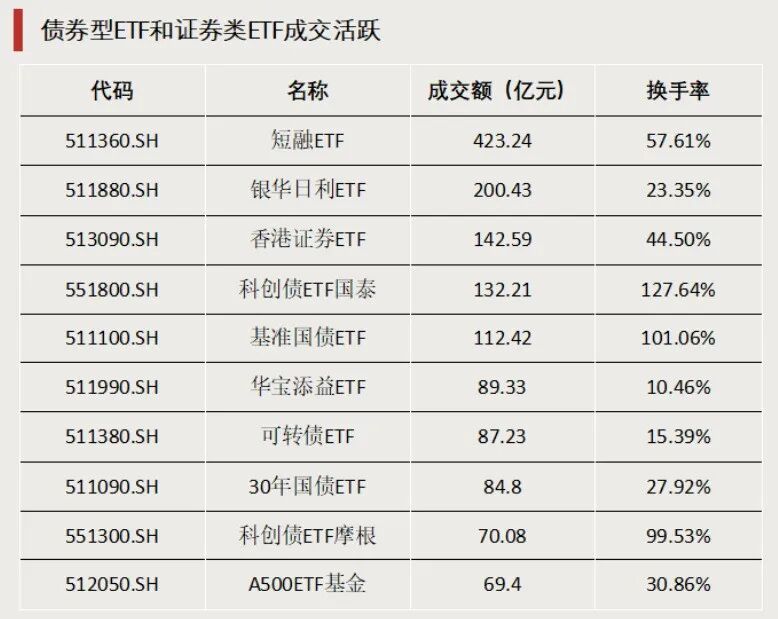 债券型ETF和证券类ETF成交活跃