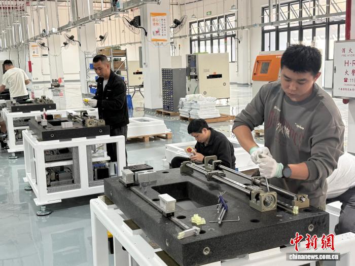 园区内的制造企业技术人员对设备进行调试和校准。记者蔡敏婕摄