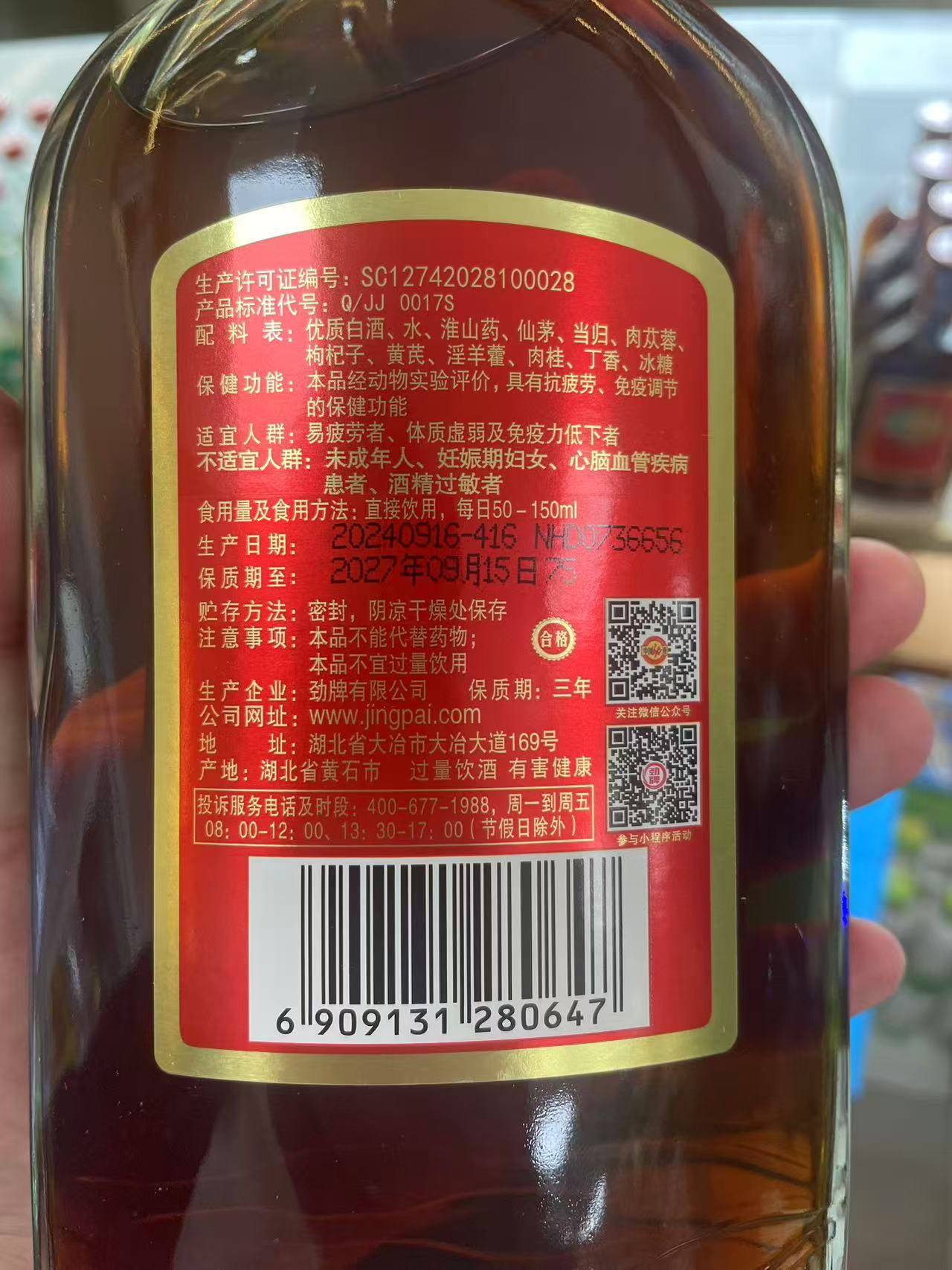 记者调查发现,劲酒的配料表包括:白酒、水、淮山药、仙茅、当归、肉苁蓉、枸杞子、黄芪、淫羊藿、肉桂、丁香、冰糖等。其中当归、黄芪等活血药材,理论上可能加重经期出血。