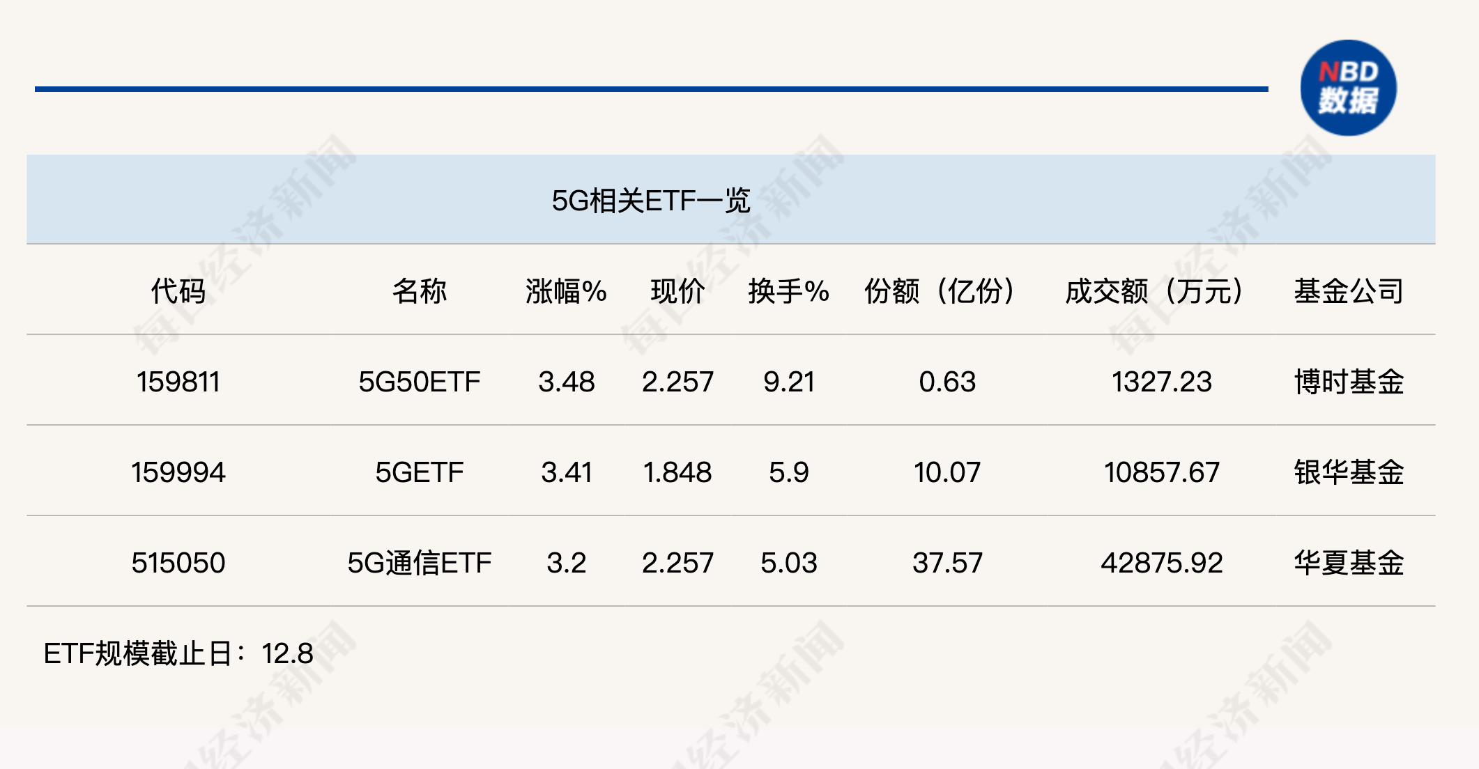 点评:5G50ETF(159811)半日涨幅达到3.48%,份额为0.63亿份,该ETF半日成交金额为1327.23万元,追踪的是中证5G产业50指数。