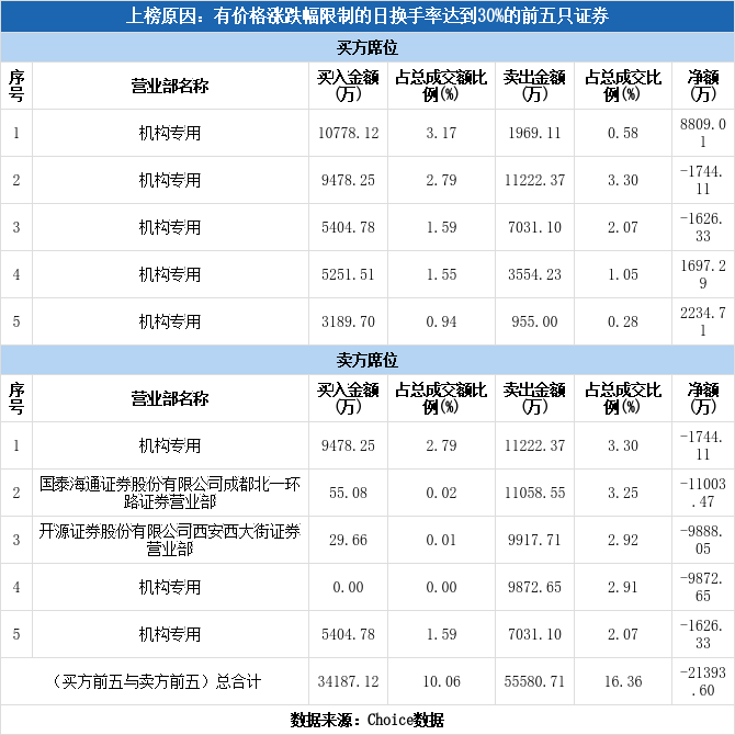 龙虎榜数据显示,今日共8个机构席位出现在龙虎榜单上,分别位列买一、买二、买三、买四、买五、卖一、卖四、卖五,合计净卖出502.08万元,占龙虎榜净卖额的2.35%。除此之外还有永辉超市、德科立、雷科防务等35只个股榜单上出现了机构的身影,其中17家呈现机构净买入,获净买入最多的是德科立,净买额为2.60亿元;18家呈现机构净卖出,其中遭净卖出最高的为永辉超市,净卖额为3.42亿元。