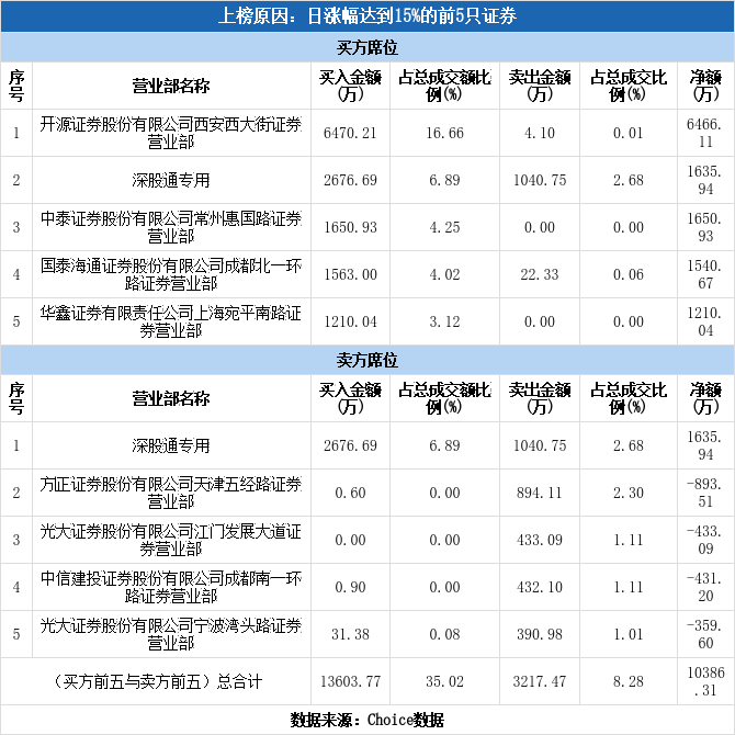 深股通现身龙虎榜,中创环保涨停(12-09)