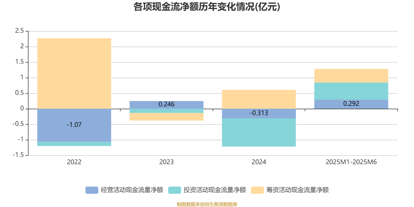 2025年1月至6月,公司经营活动现金流净额为2916.7万元,同比增加6197.1万元;筹资活动现金流净额4382万元,同比增加1733.5万元;投资活动现金流净额5511.4万元,上年同期为-878.1万元。