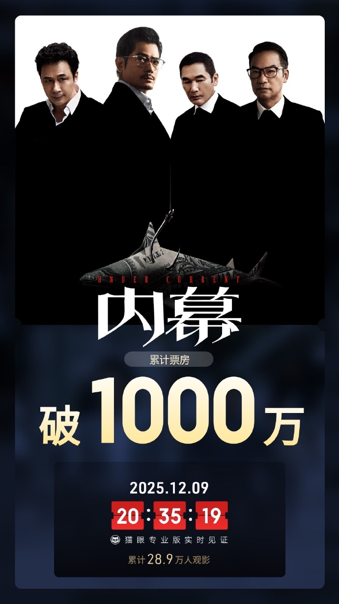 12月9日,据猫眼专业版数据,电影《内幕》上映4天,总票房破1000万元。