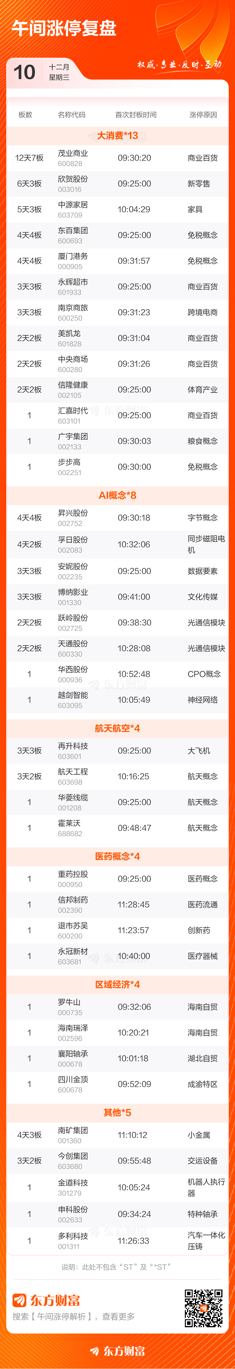 12月10日午间涨停复盘:39股涨停 茂业商业12天7板