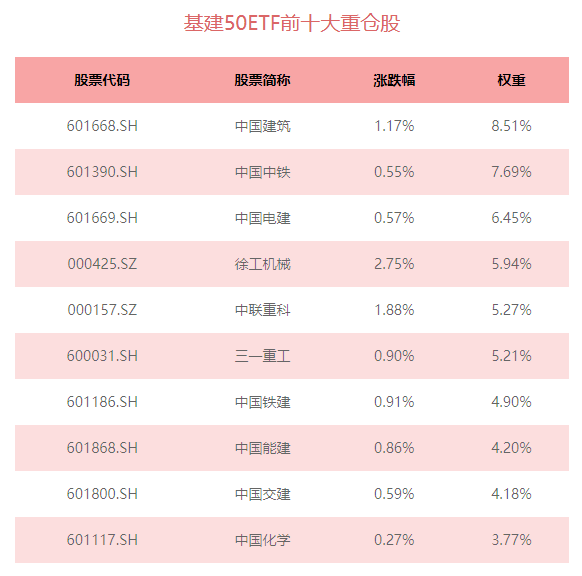 从估值层面来看,基建50ETF跟踪的中证基建最新市盈率(PE-TTM)仅9.55倍,处于近10年31.98%的分位,与全A其他板块横向比较,估值处在相对低位。