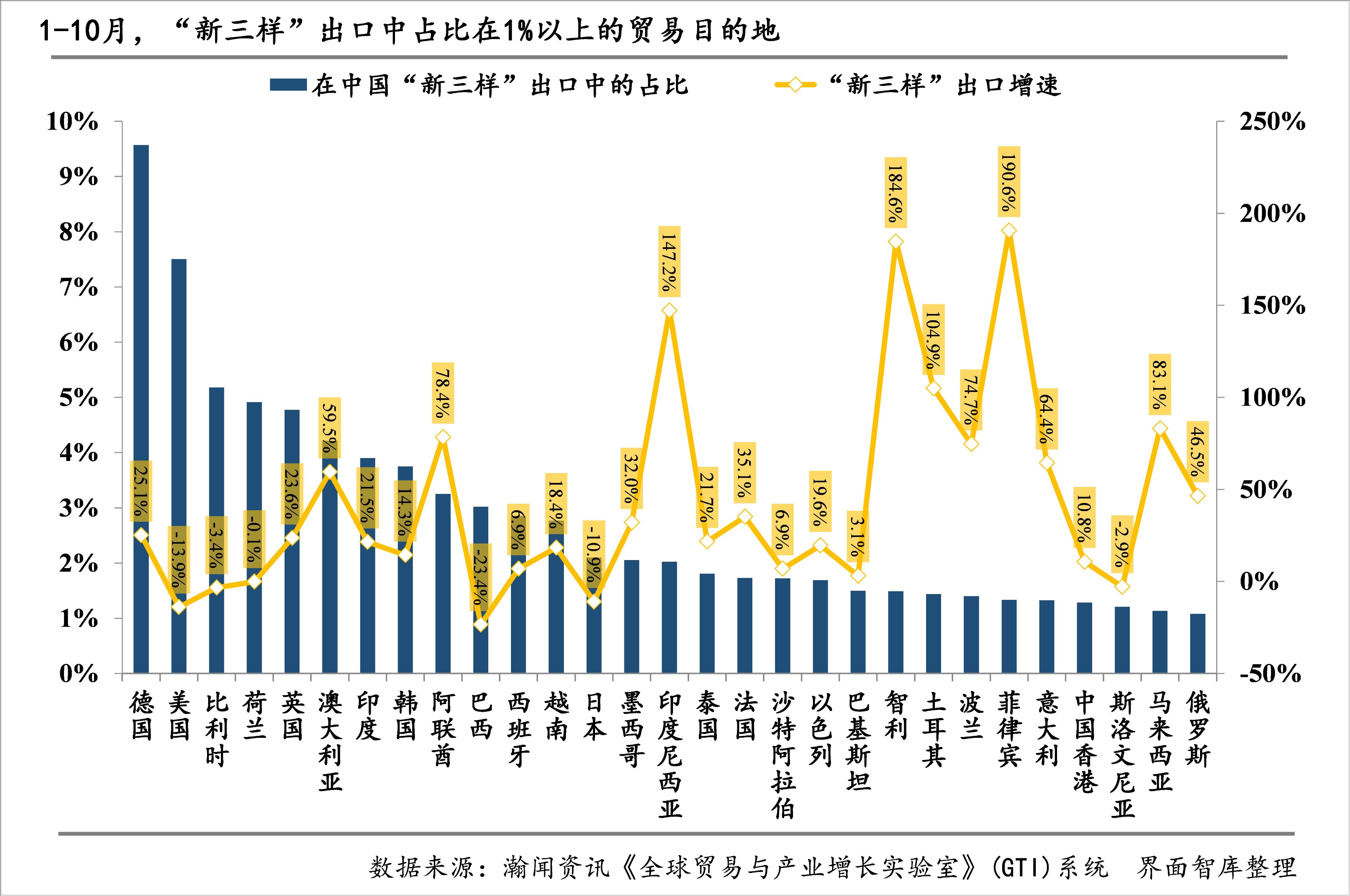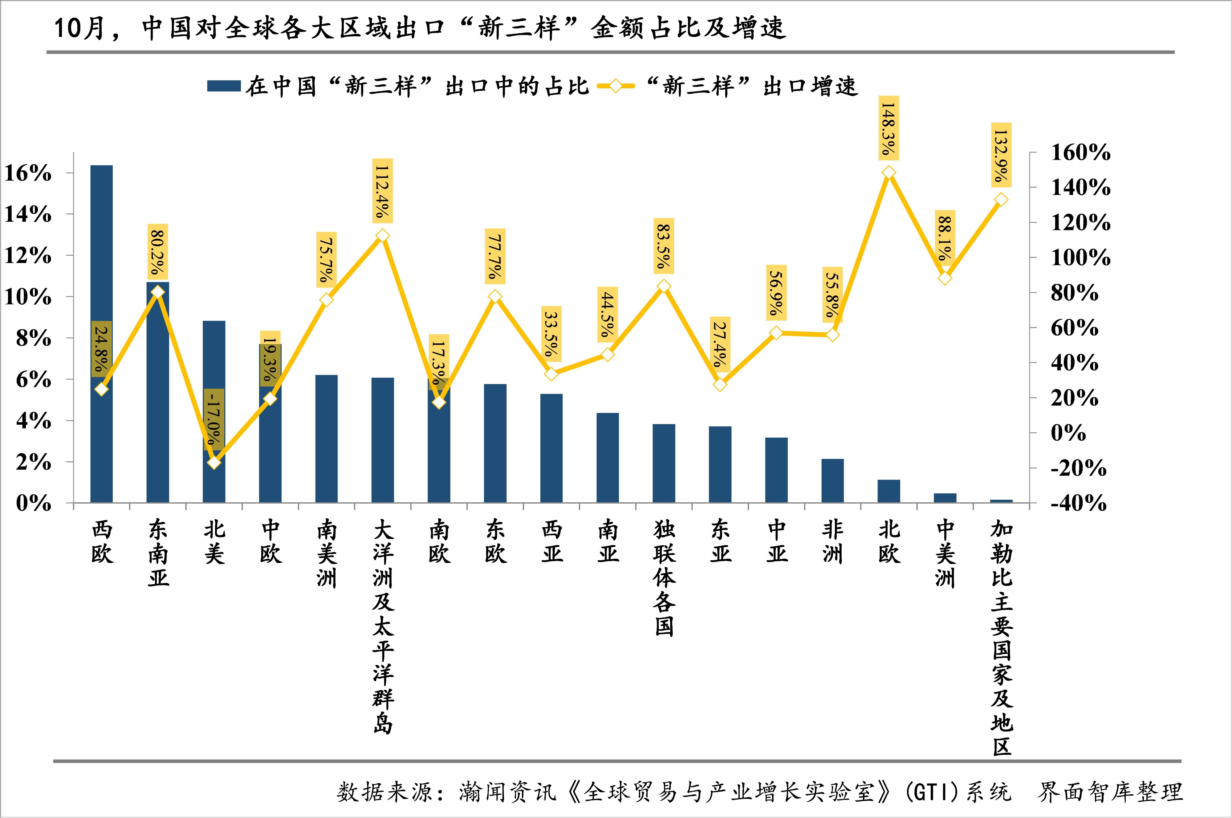三、澳大利亚对10月“新三样”出口贡献最大,对北欧出口大幅增长