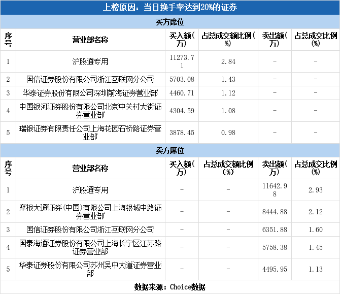沪股通现身龙虎榜,实达集团换手率达29.37%(12-10)