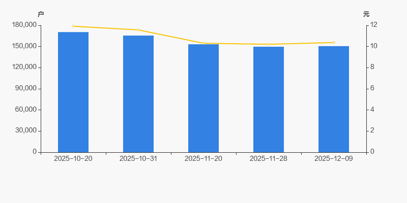 2025年10月20日至今,公司股东户数显著下降,区间跌幅为11.68%。2025年10月20日至2025年12月9日区间股价下降12.92%。