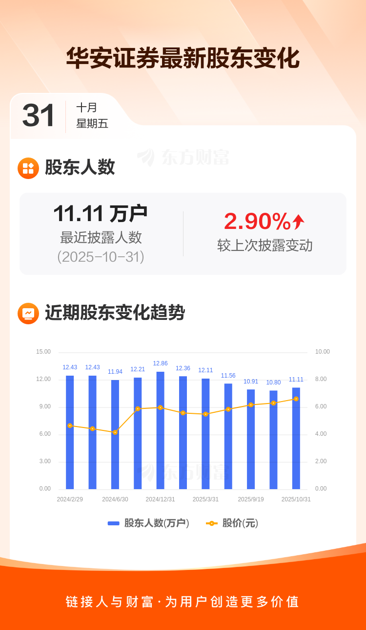 华安证券:截至10月31日最新股东户数11.11万户,较上期增加2.90%