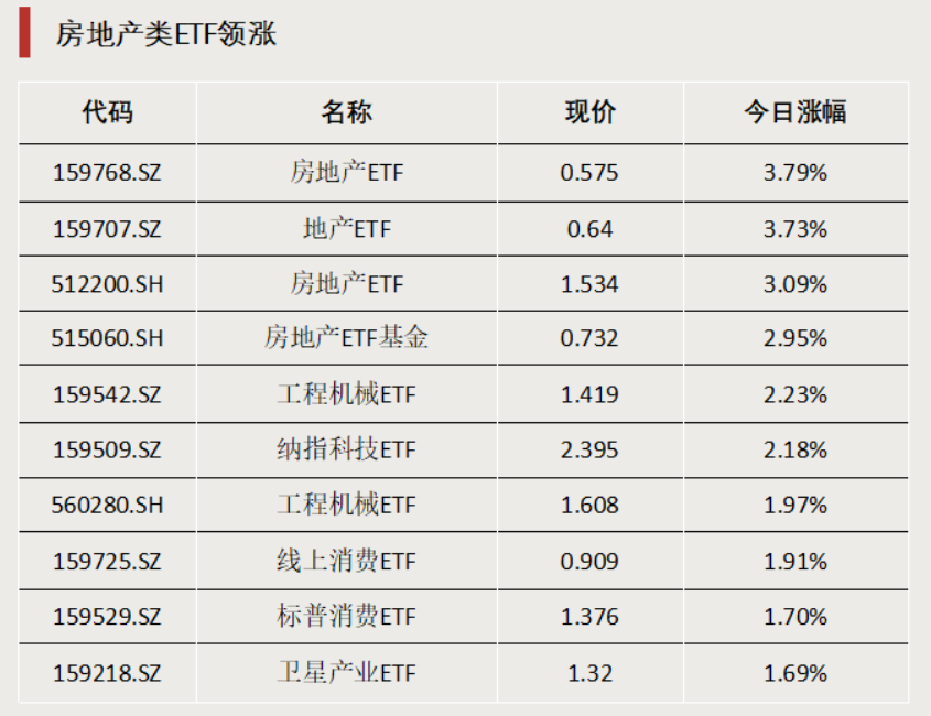 今日,房地产板块表现强势,多只成分股涨停,房地产类ETF跻身ETF市场涨幅榜前列。