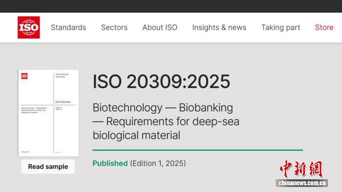 中新网深圳12月10日电 记者10日从总部位于深圳的华大集团获悉,由国际标准化组织生物技术委员会(ISO/TC276)归口,总部位于深圳的华大集团联合多家机构共同研制的国际标准《ISO20309:2025 Biotechnology— Biobanking— Requirements for deep-sea biological material》(暂译名:生物技术—生物样本库—深海生物样本保藏要求),于9日正式发布。
