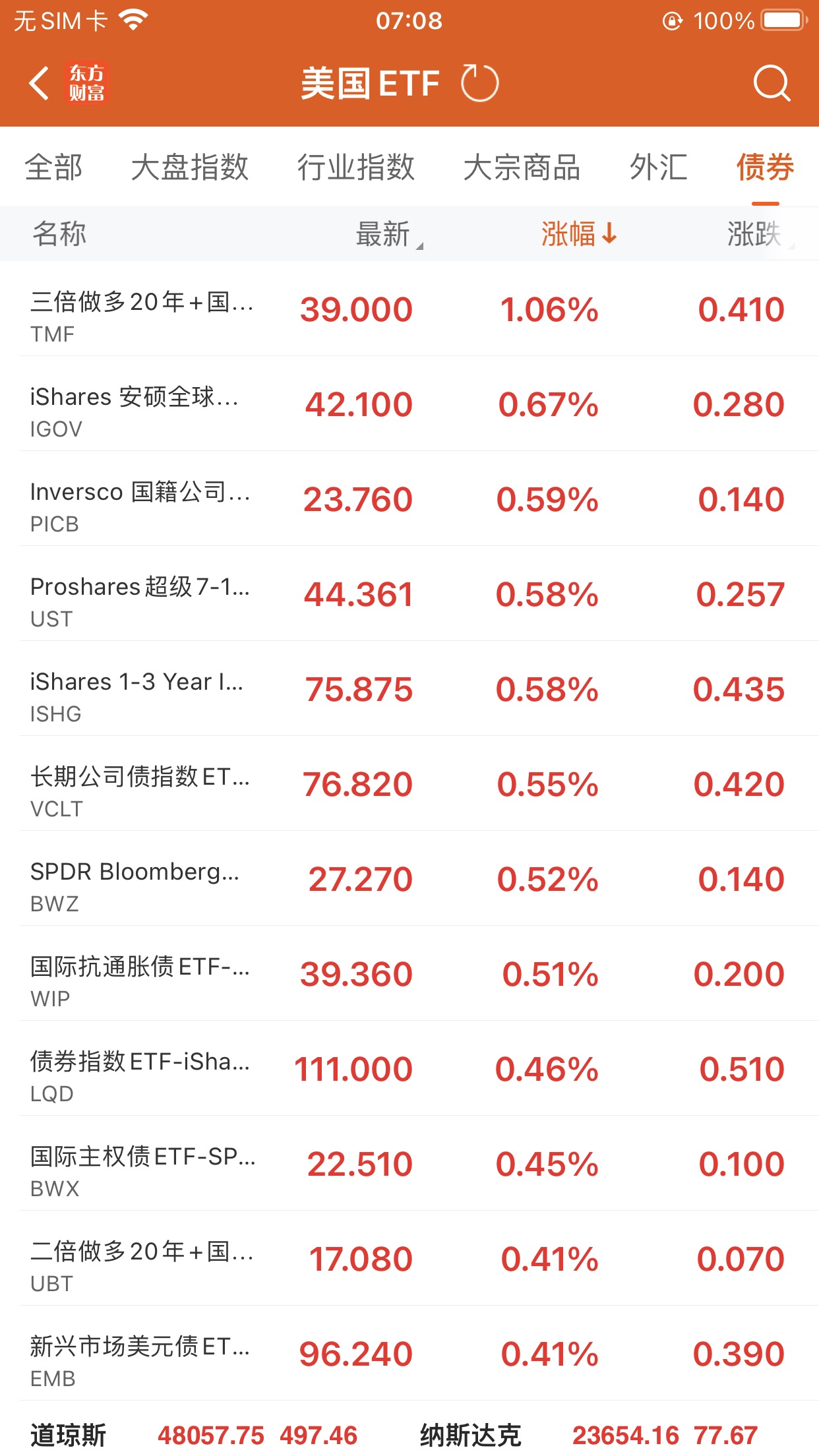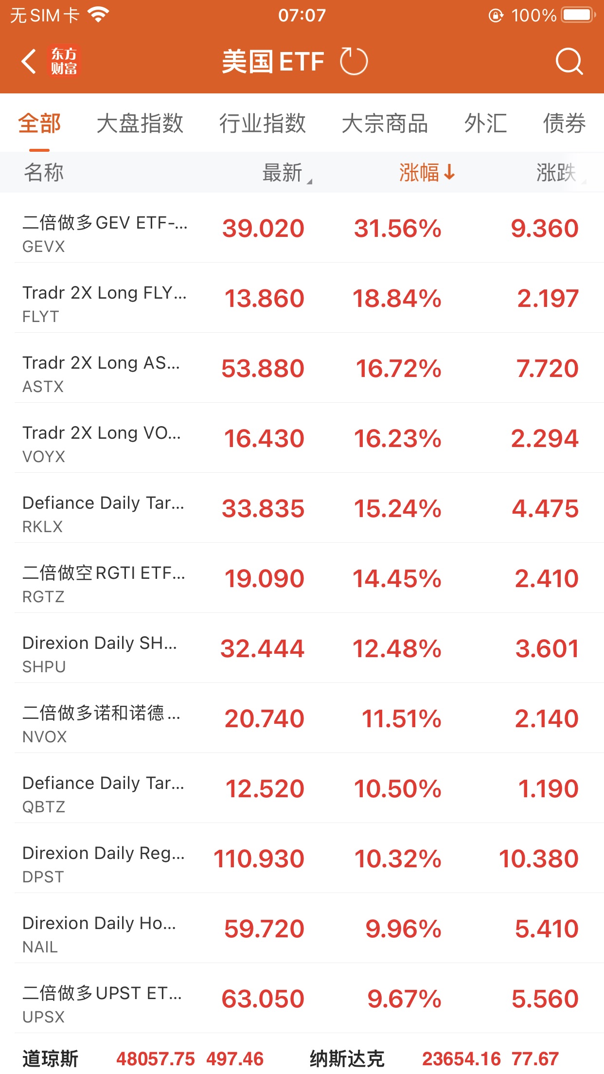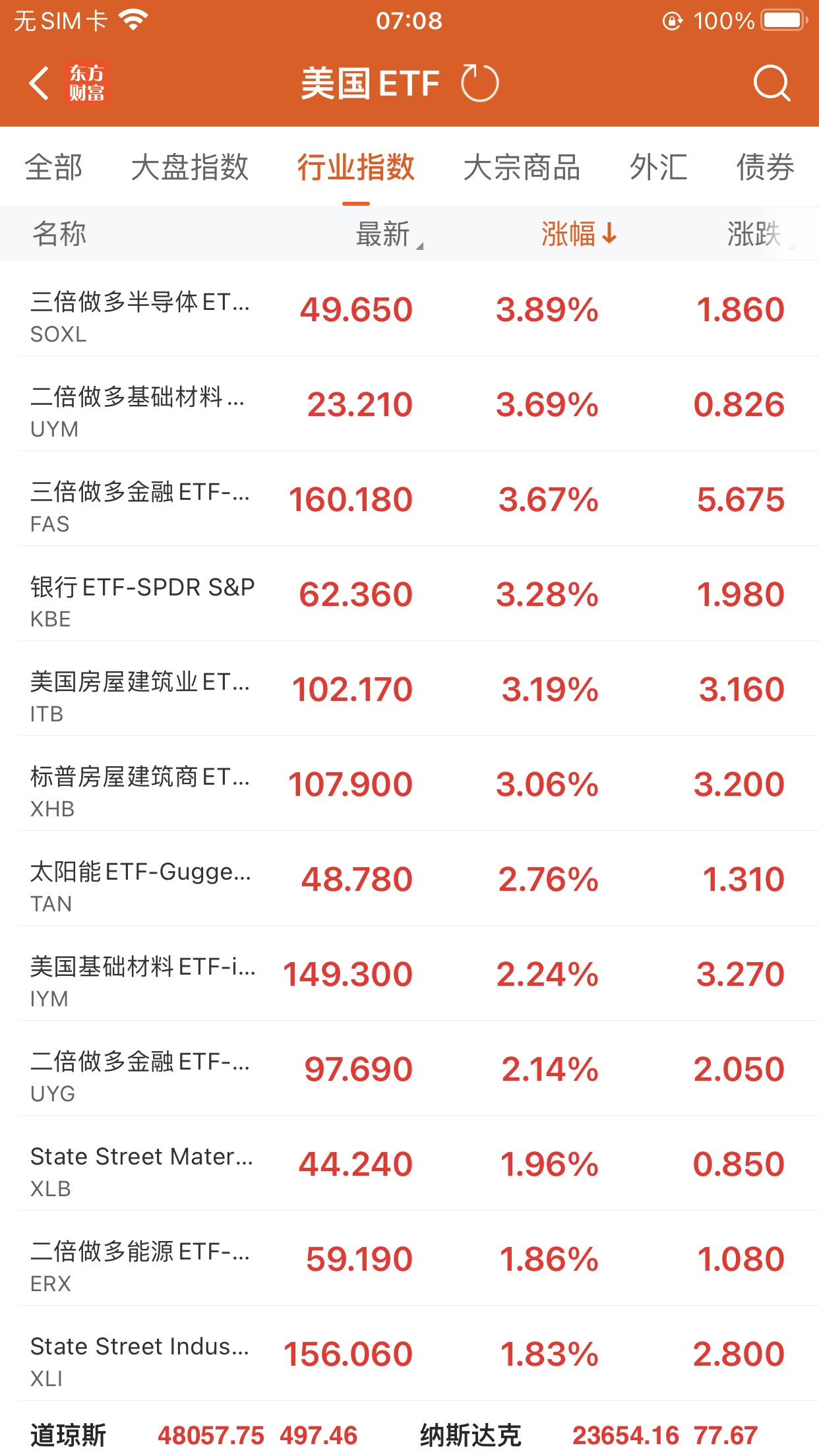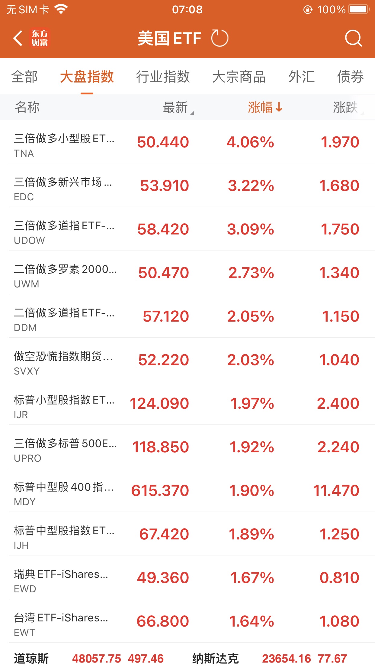 美股大型指数ETF升幅榜Top5