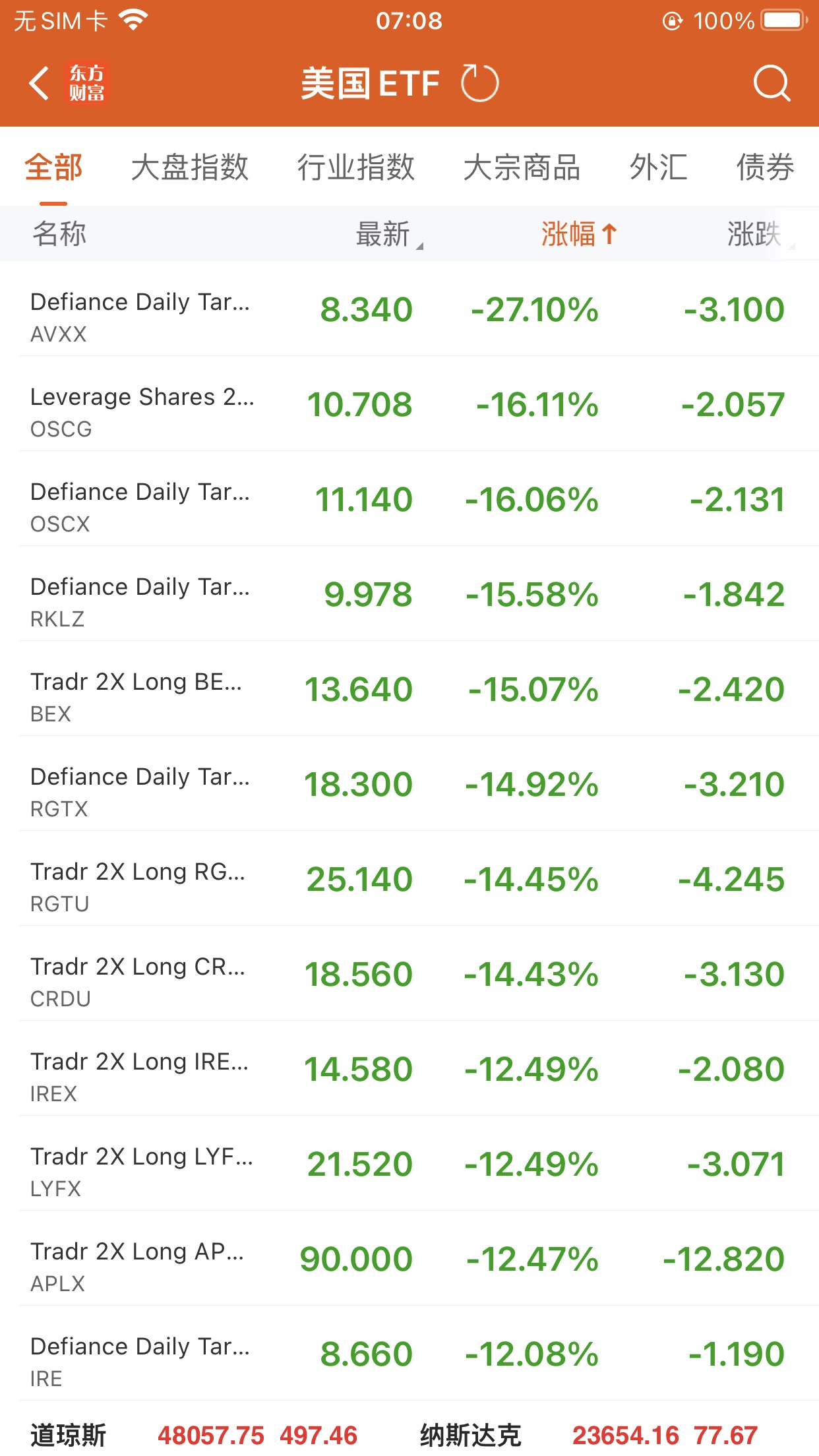 美股ETF跌幅榜Top5