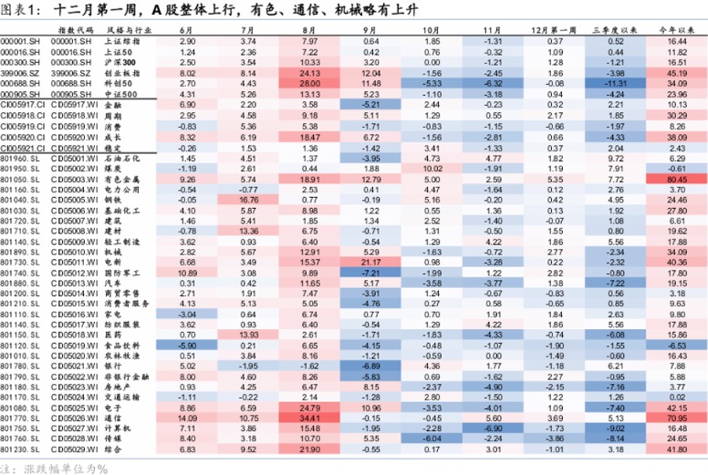 上周A股继续缩量反弹。资金面,联储降息预期回暖和国内基本面定价有效性提升共振下资金面环境有所改善。政治局及中央经济会议前政策预期或逐步升温,12月中下旬“春躁”可能提前启动,均衡配置成长和周期,中期视角下大金融和部分高性价比消费或仍是中国资产重估的底仓选择。