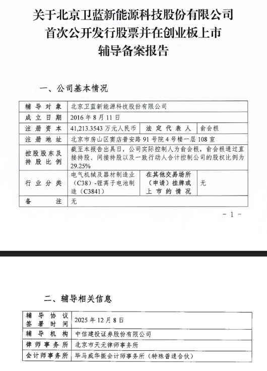 卫蓝新能源、正扬科技、全芯智造等四家企业启动A股IPO辅导