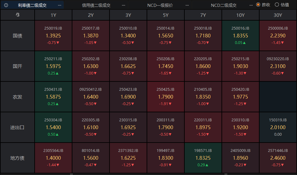 截至今日18点,利率市场收益率多数下行,1Y国债下行0.75bp至1.39%,3Y国债下行0.5bp至1.34%,5Y国债下行0.75bp至1.57%,10Y国债上行0.1bp至1.84%,30Y国债下行1.85bp至2.24%,10Y国开下行1.35bp至1.90%。信用市场收益率多数大幅下行,2Y期AAA信用债下行1.5bp至1.85%,3Y期AAA信用债下行1.83bp至2.02%,5Y期AAA信用债收益率持平至2.24%。转债方面,中证转债指数今日收盘报483点,收涨0.44%。